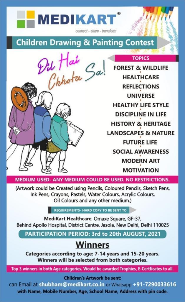 05 Aug News, Articles, Event MediKart Children Drawing & Painting Competition | Dil Hai Chhota Sa! Posted by MediKart Team August 3, 2022 0 MediKart HealthCare Systems is organizing a Children Drawing and Painting Competition- "Dil Hai Chho... Continue reading