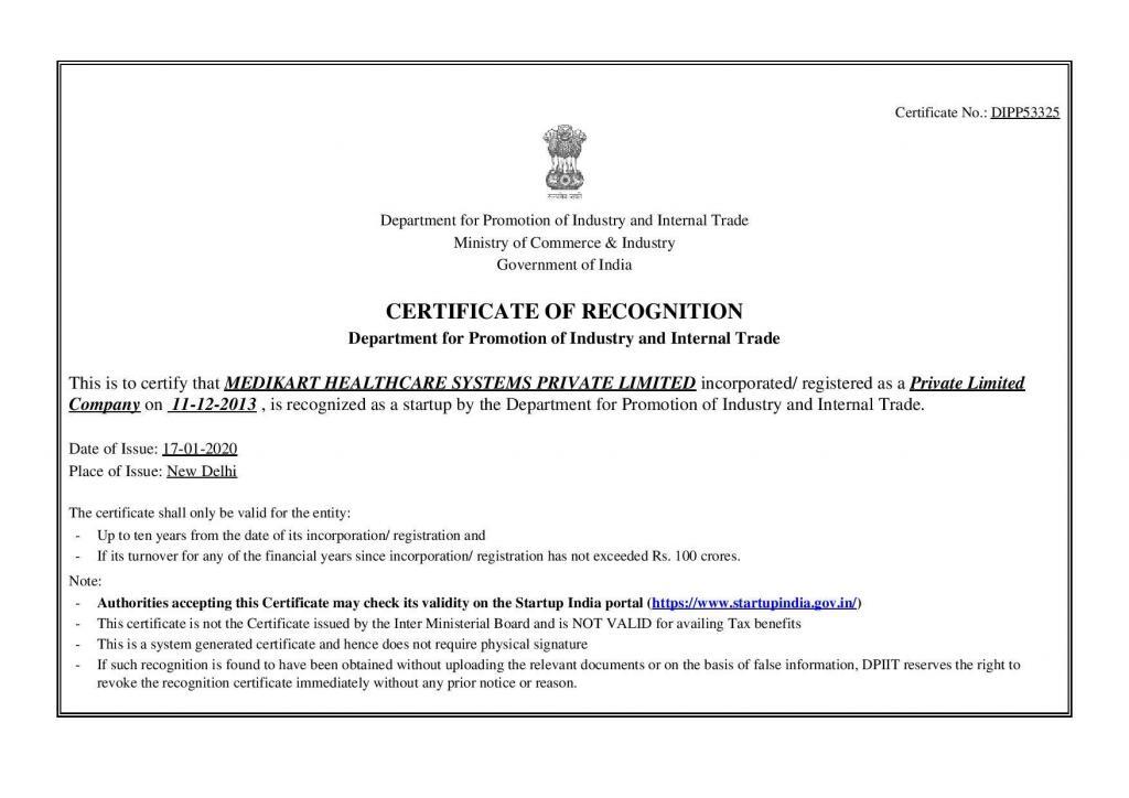 By Department for Promotion of Industry and Internal Trade MEDIKART HEALTHCARE SYSTEMS PRIVATE LIMI...