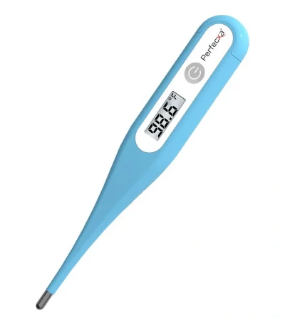 Perfecxa Waterproof Flexible Tip Digital Thermometer offers quick, accurate readings. Features a flexible tip for comfort and safety, suitable for oral, rectal, and underarm use. Waterproof for easy cleaning, digital display, and beeps when measurement is complete. Ideal for all age groups.