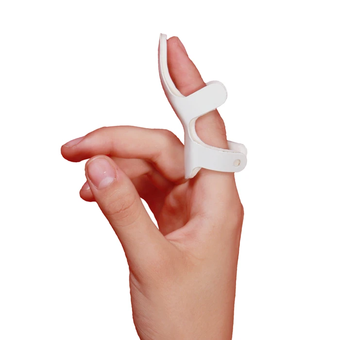 The Adore Frog Splint is designed to rehabilitate and align post-ligamentary damage of the interphalangeal joints. Made from a lightweight yet rigid aluminum frame, it ensures effective immobilization. The splint features a soft foam inner liner for added comfort and aluminum wings that can be adjusted for a perfect fit. It is easy to apply and suitable for various finger sizes. The splint is ideal for use in cases of fractures, sprains, and other finger injuries, providing reliable support and protection.
