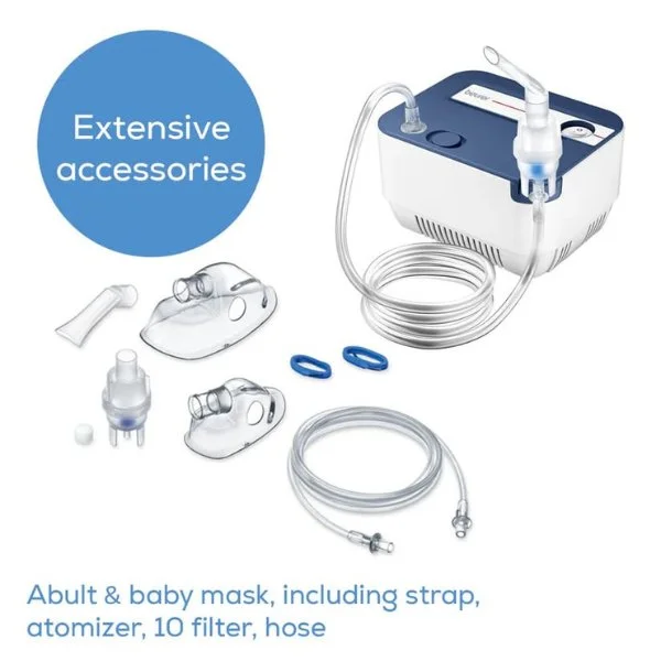 Equipped with multiple accessories such as adult and child masks, mouthpiece, and filters, the IH-17 provides a complete home healthcare solution. Ideal for home, clinic, and travel use, this nebulizer combines efficiency, durability, and convenience to help you breathe easier, anytime and anywhere.