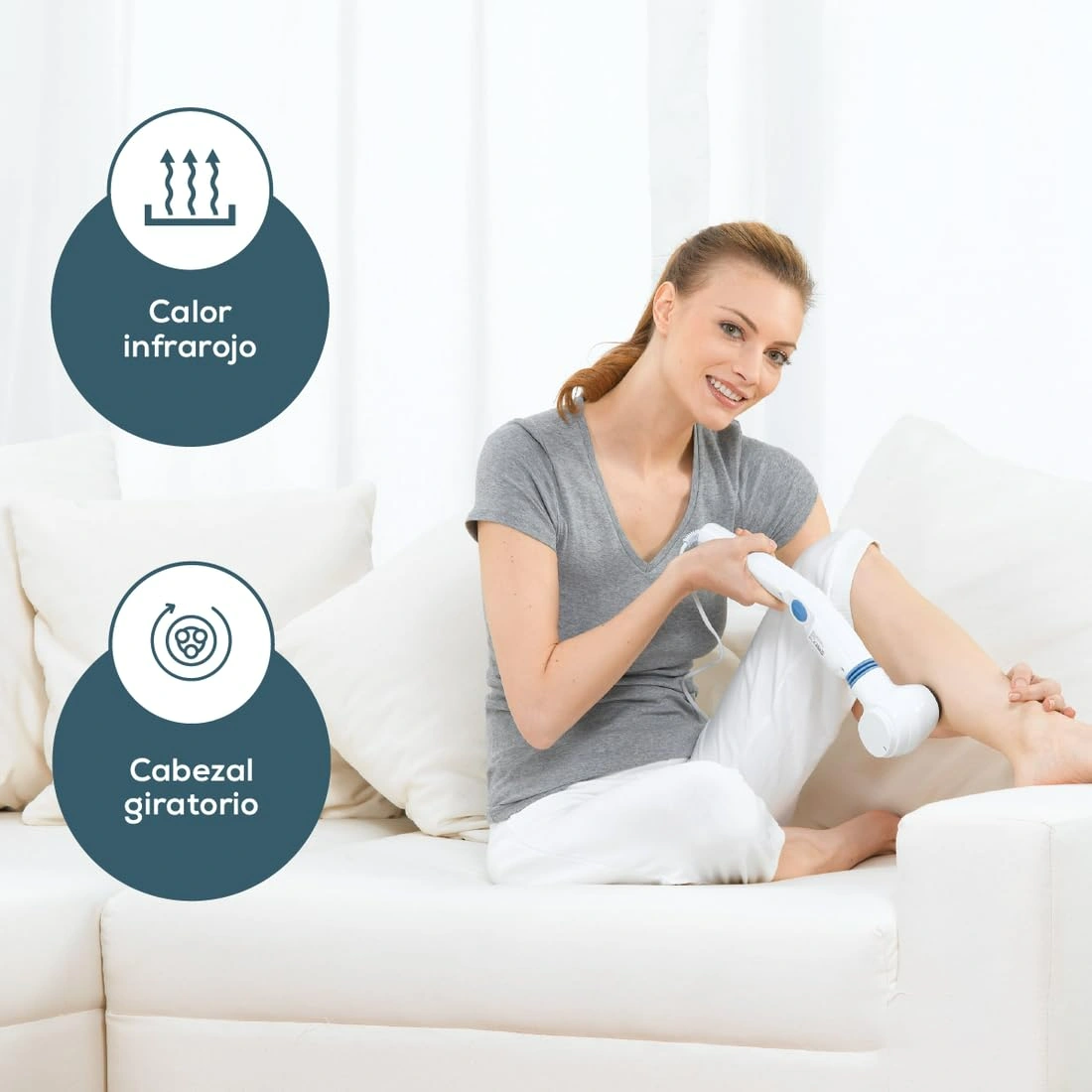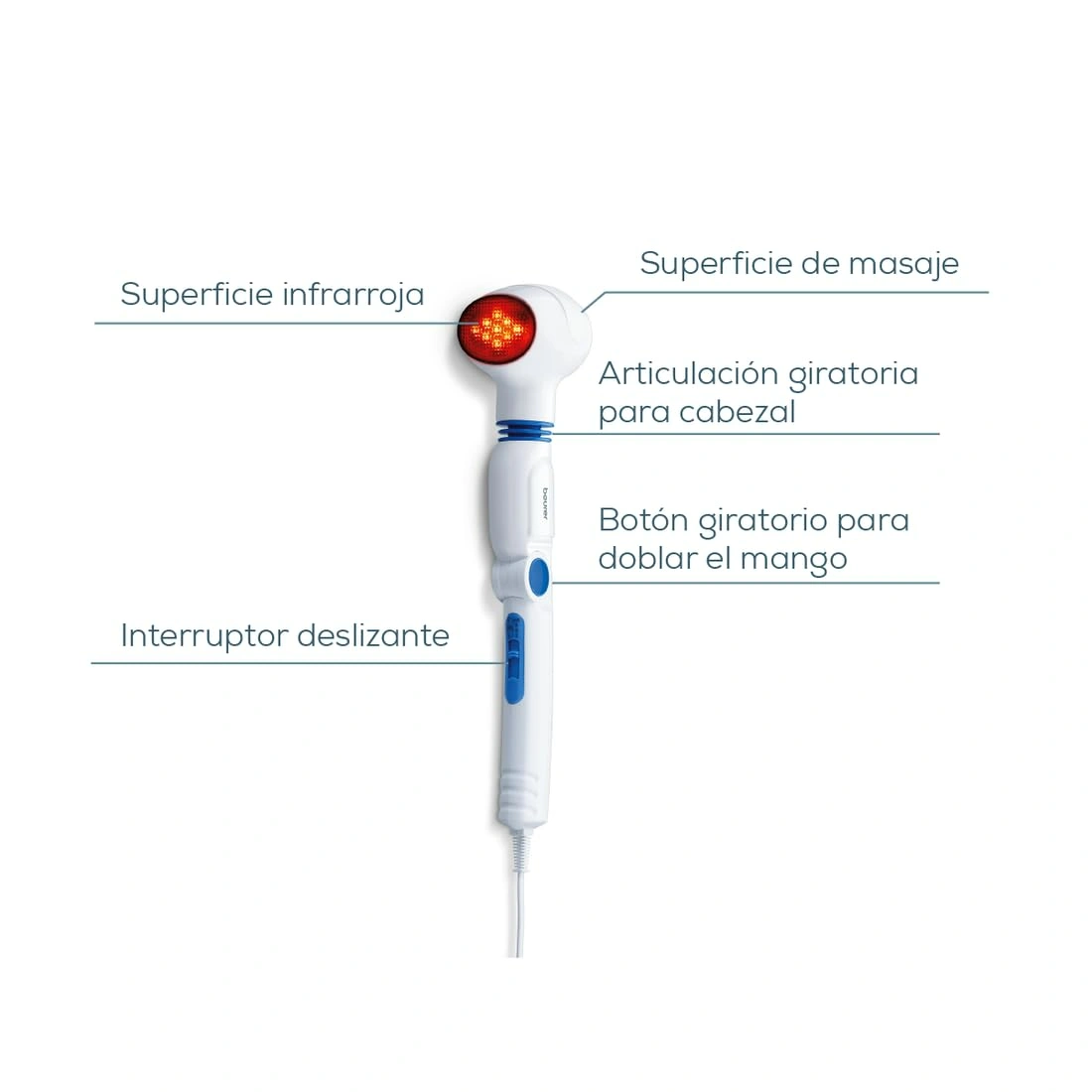 The Beurer MG 40 Infrared Massager offers soothing vibration massage with infrared heat. It features a rotating head, four attachments, and three function levels for a customized massage experience. Compact and lightweight, it is ideal for home or travel use.