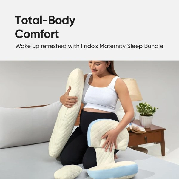 The Frido Maternity Pillow Bundle is thoughtfully engineered to provide all-around support during pregnancy and beyond. Its unique butterfly-shaped, adjustable design allows you to customize firmness and positioning, helping relieve pressure on the lower back, hips, belly, legs, and bum. This targeted support promotes proper spinal alignment and reduces tossing and turning for more restful sleep.