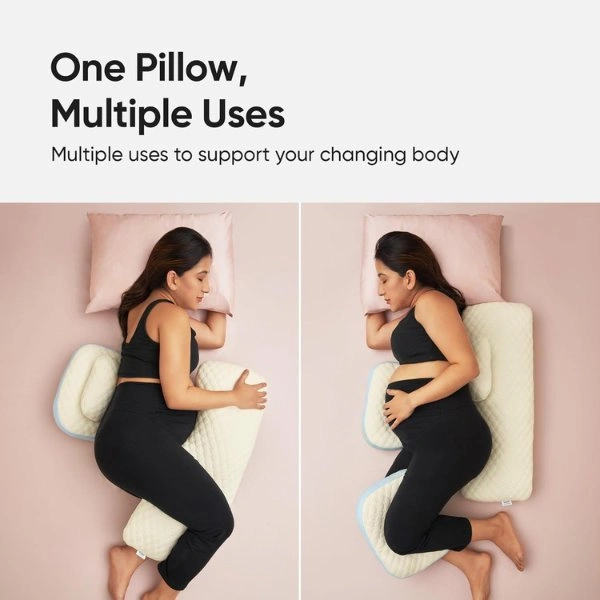 Crafted with soft yet supportive filling and wrapped in a hypoallergenic organic cotton cover, the pillow is gentle on sensitive skin and breathable for year-round comfort. The travel-friendly cuddle pillow format makes it easy to use on beds, sofas, or while traveling, ensuring consistent comfort wherever you go. Ideal for side sleepers, maternity rest, postnatal recovery, and even lounging, this bundle is designed to grow with you through every stage.