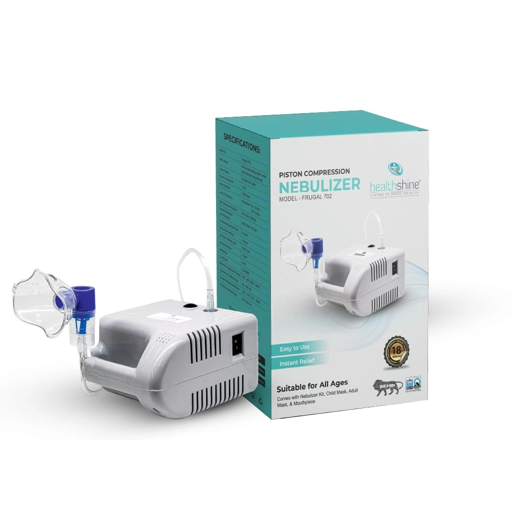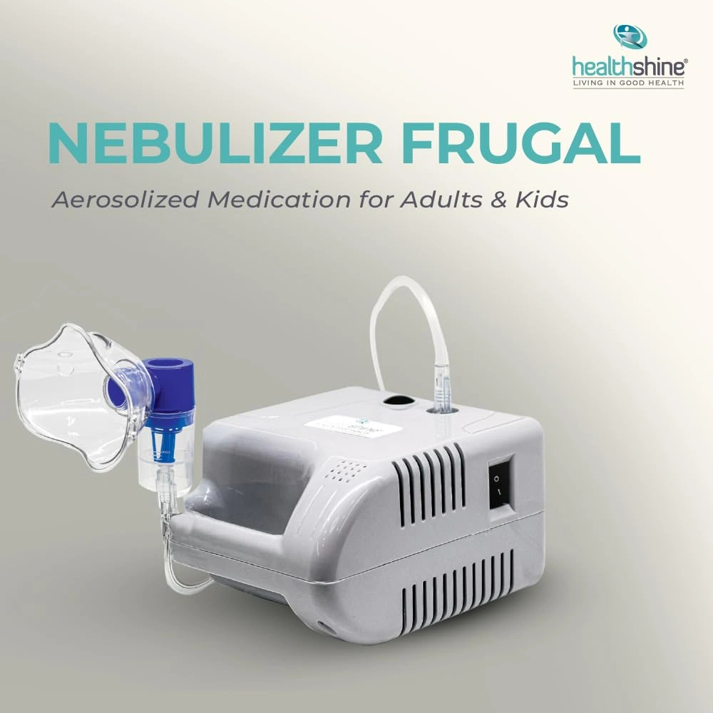 The Healthshine Nebulizer Frugal Machine is a compact and efficient medical device designed for delivering medication in mist form to individuals suffering from respiratory conditions. It provides quick and effective relief by transforming liquid medication into an inhalable mist, making it easy for patients to breathe in. With a user-friendly design, the nebulizer is perfect for children and adults alike. The device operates quietly and is portable, making it convenient for home or travel use. It is designed with durable materials to ensure long-lasting use and easy maintenance, supporting better health for the user.