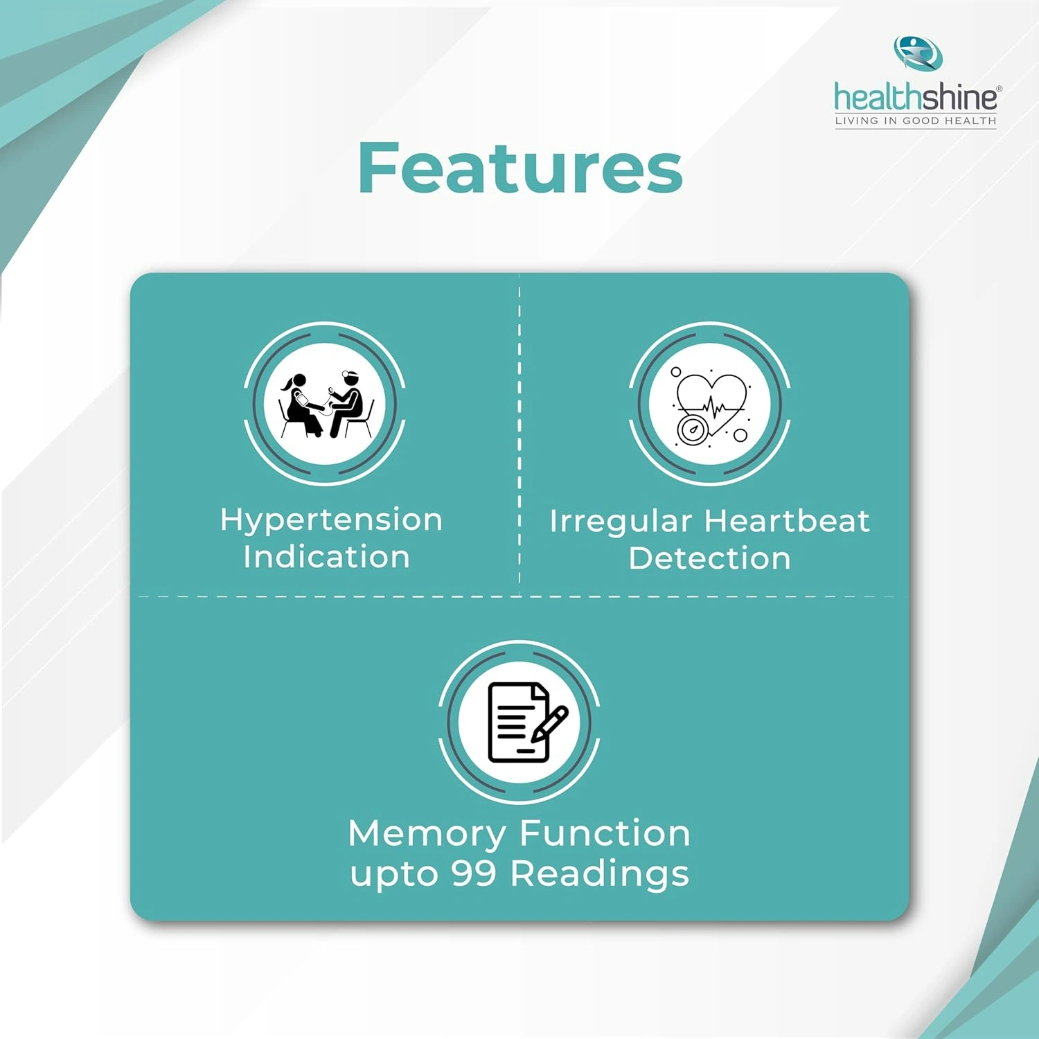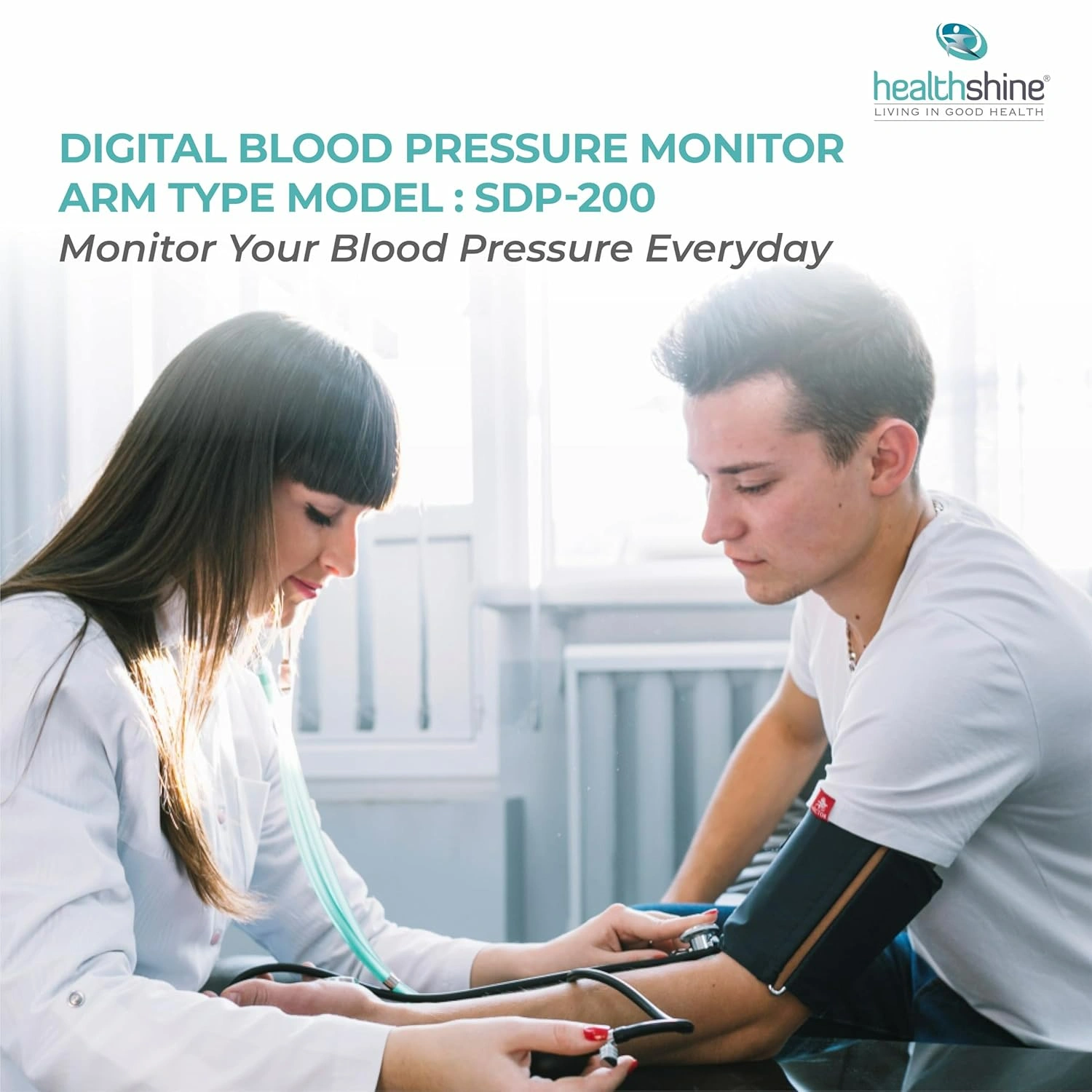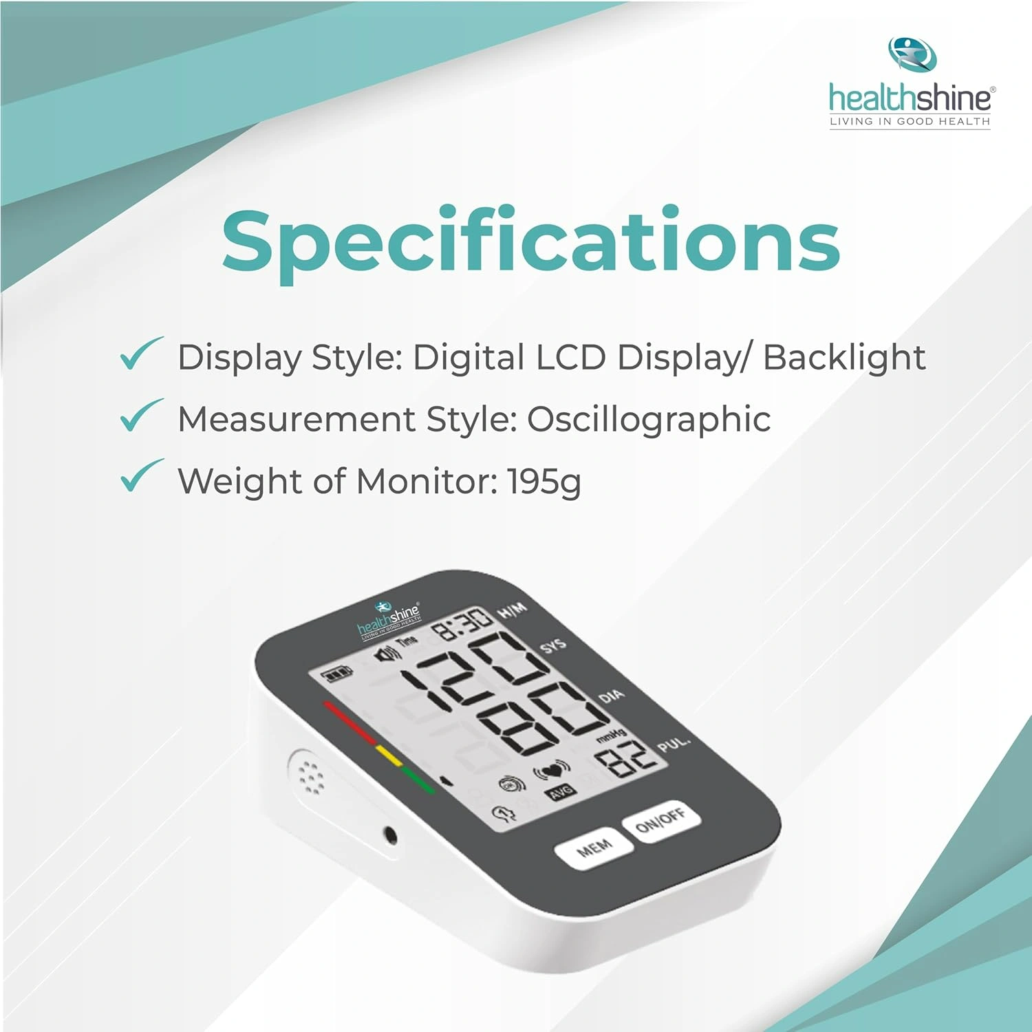 Healthshine Premium Digital Blood Pressure Monitor features a large, easy-to-read display, one-touch operation, memory storage, and an adjustable cuff for accurate readings. Ideal for home use with portability, the compact design ensures convenience and comfort.