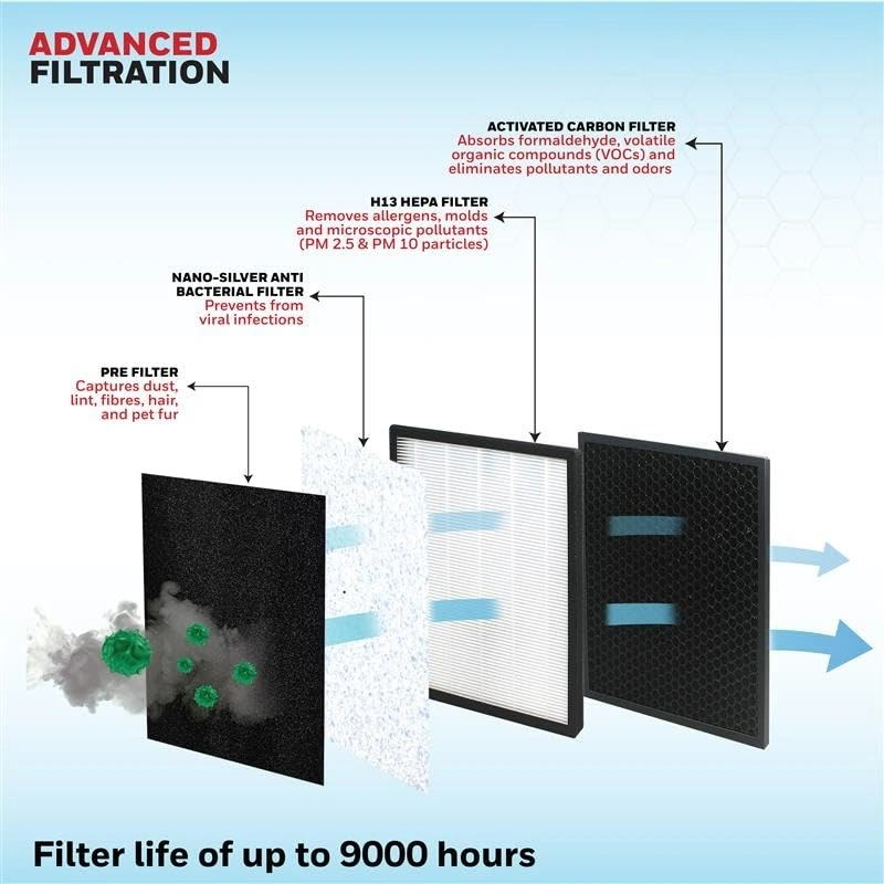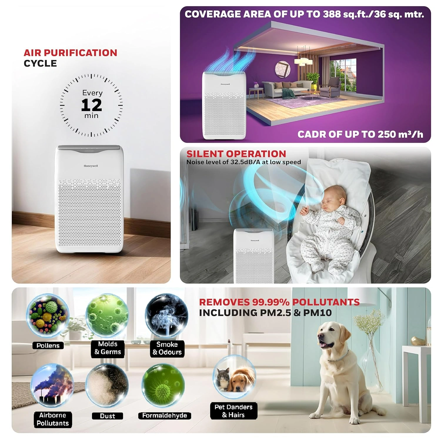Honeywell Air Purifier for Home – Air touch V2 – 4 Stage Filtration, Covers 388 sq.ft, High Efficiency Pre-Filter, H13 HEPA Filter, Activated Carbon Filter, Removes 99.99% Pollutants & Micro Allergens