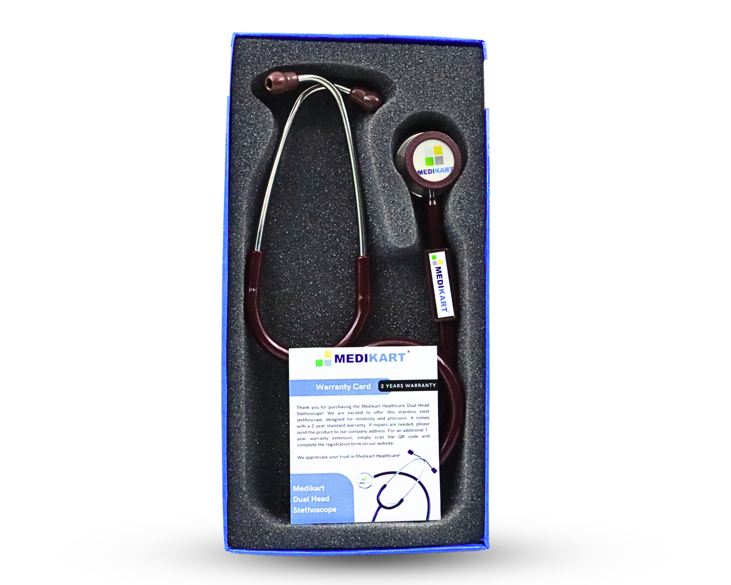 To get the additional 1-year warranty, visit the Medikart website and register your stethoscope with the required details.