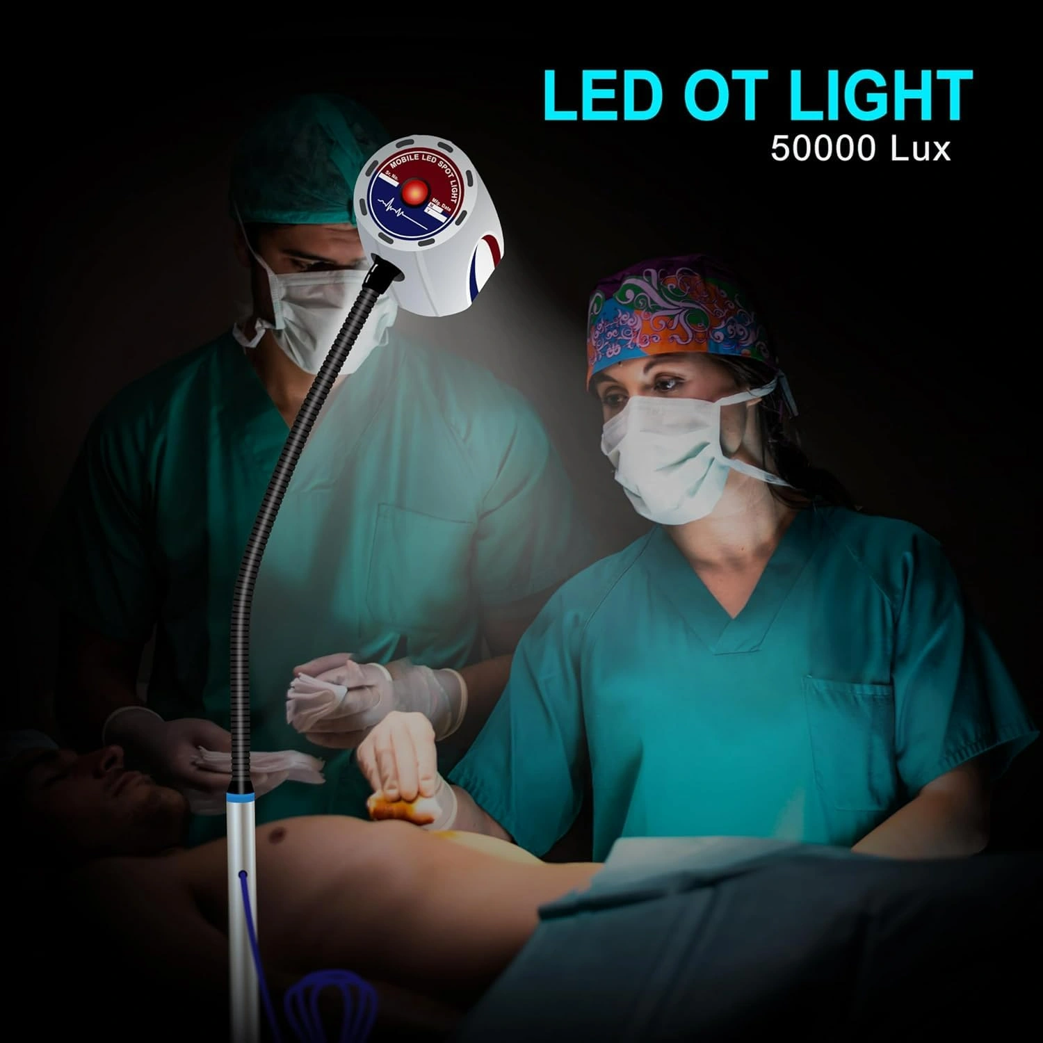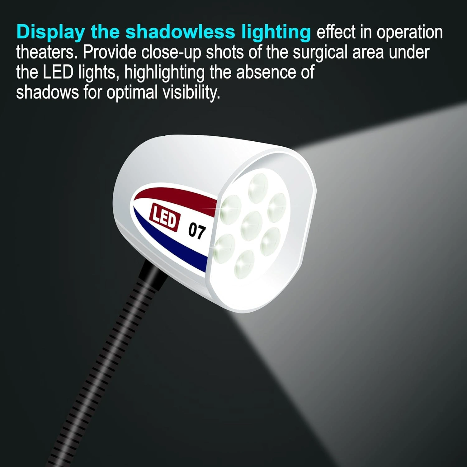 High-intensity surgical light with advanced LED technology, flexible positioning, and shadowless lighting effect. Ideal for medical and dental use, providing clear visibility and precision.