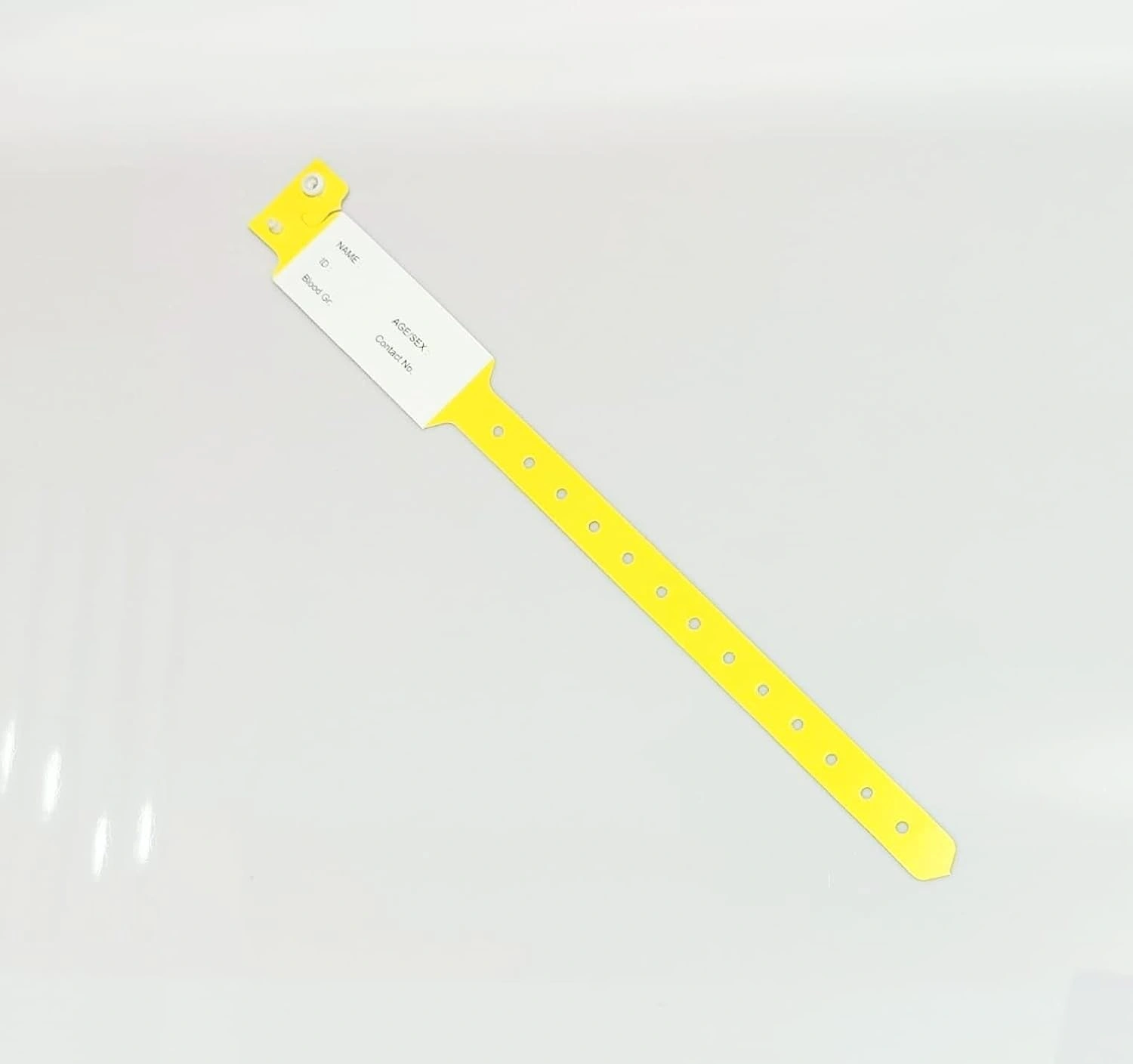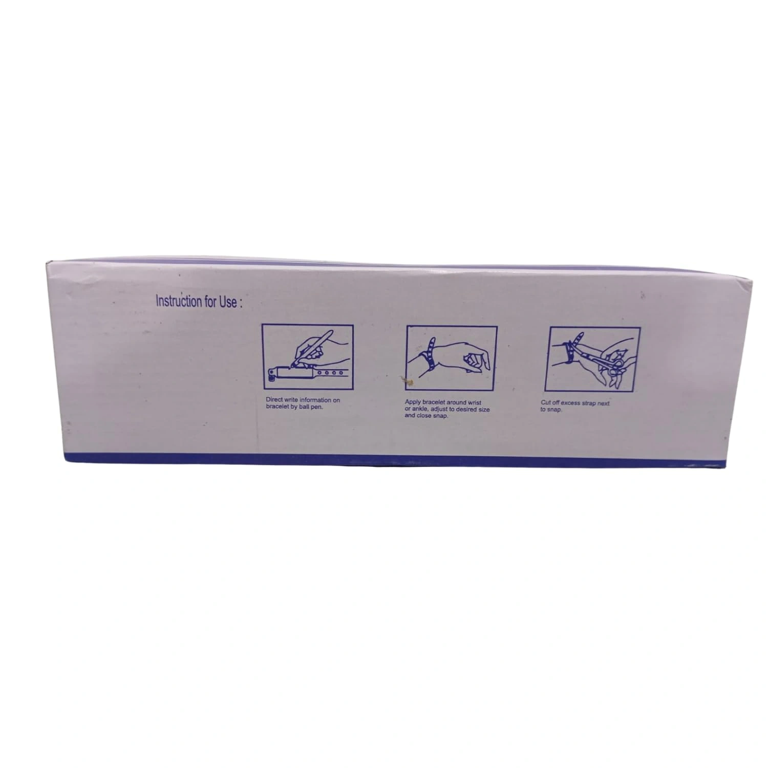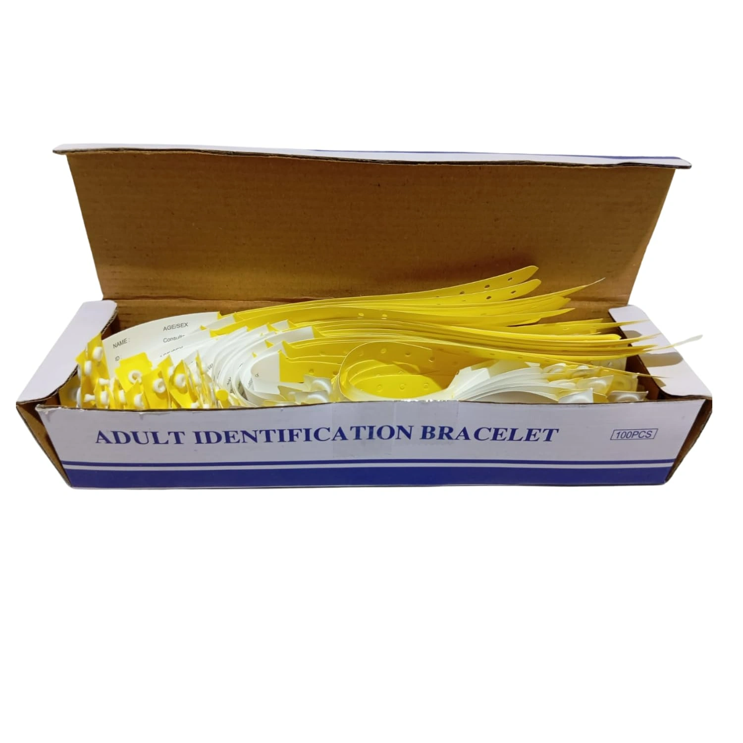 Durable and hypoallergenic patient identification bands for hospitals. Waterproof, tear-resistant, and easy to write on. Pack of 100 bands with snap closure for secure fit.
