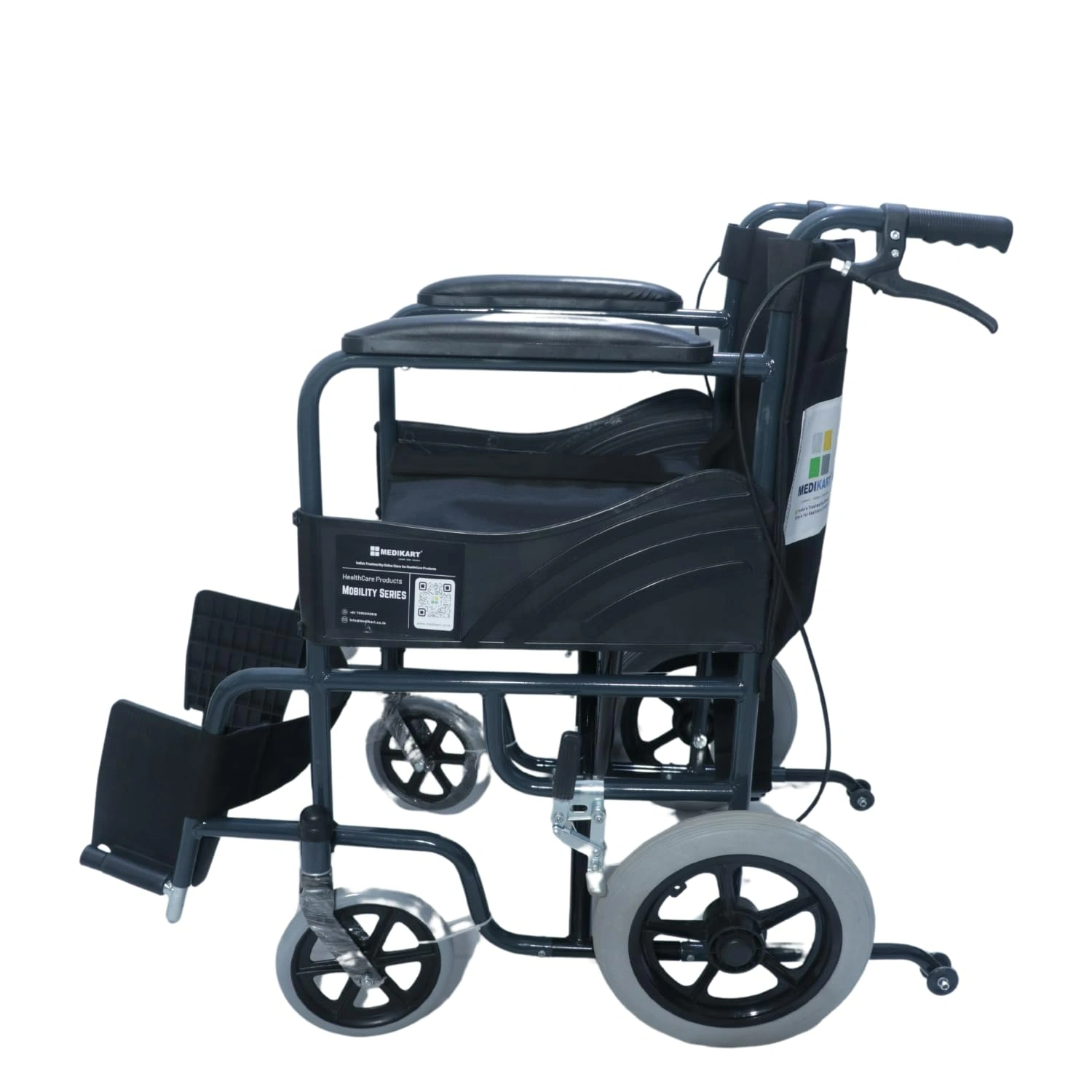 The Medikart Healthcare Wheelchair is designed for comfort and convenience. It features a foldable design for easy storage and transport, and adjustable footrests to accommodate different user needs. The wheelchair is built with a sturdy frame and comfortable seating, ensuring durability and ease of use. Suitable for both indoor and outdoor use, it provides enhanced mobility for patients and elderly individuals. The wheelchair also includes safety features to ensure a secure experience. Equipped with sturdy wheels and reliable brakes to ensure maximum safety on various surfaces.