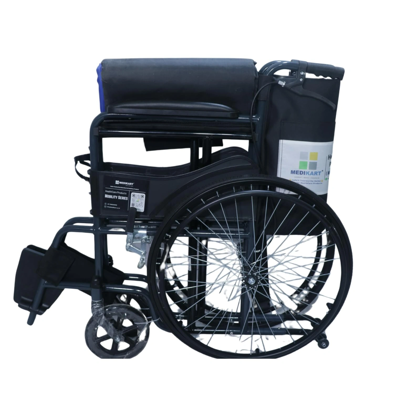 10 reviews for Medikart Spoke Wheelchair – Black and Blue – Foldable Wheelchair – Adjustable Footrest – 120Kg Weight capacity