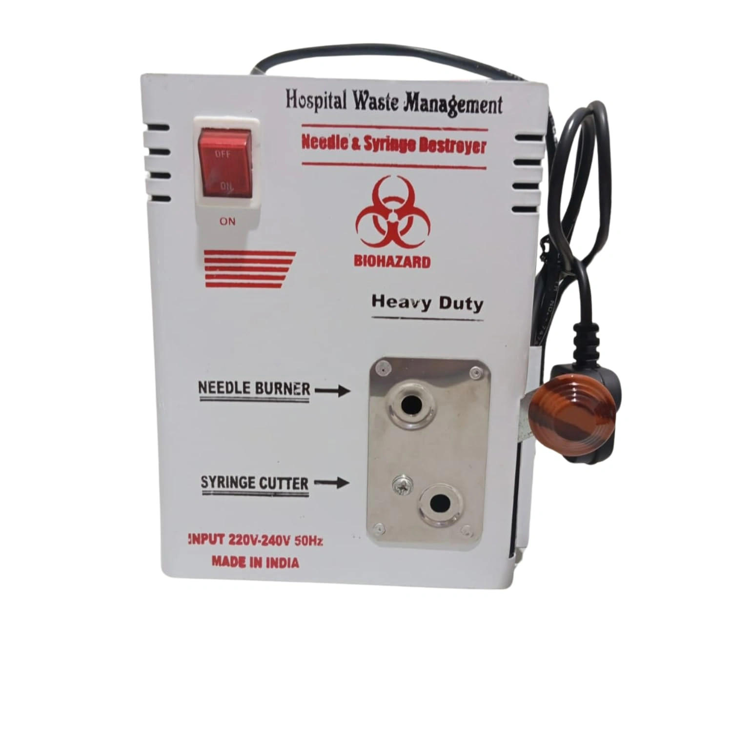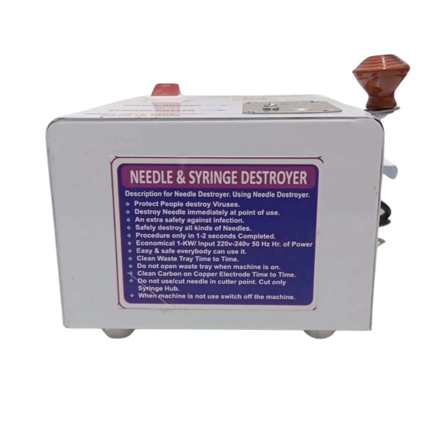 Efficient and safe syringe destroyer for hospitals and laboratories. Features high-temperature melting mechanism, robust build, and user-friendly controls. Prevents needle-stick injuries and reduces infection risks.