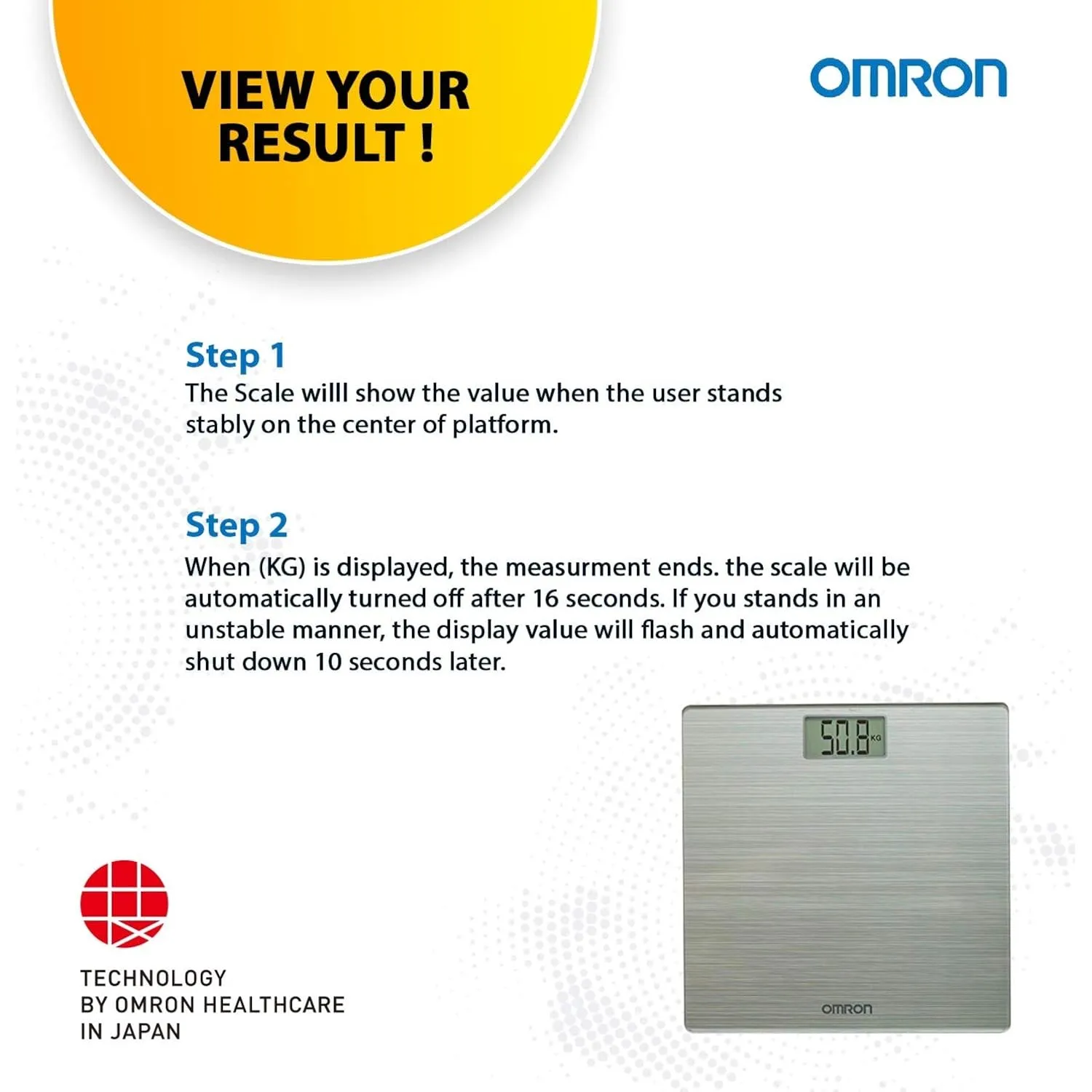 The Omron HN-286 is an ultra-slim digital body weight scale with 4-sensor accuracy technology, measuring up to 180 kg with automatic on/off functionality.