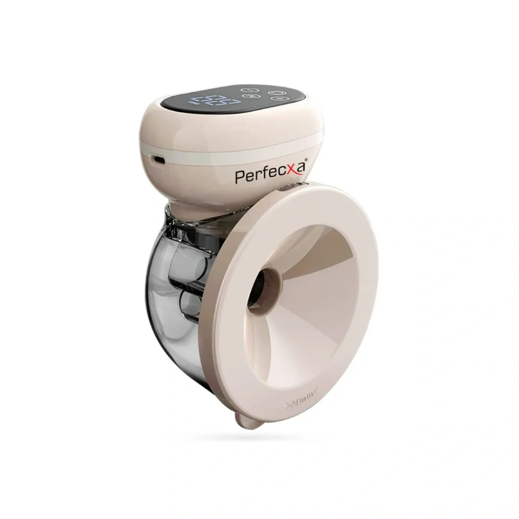 Perfecxa Automatic Double Electric Breast Pump with dual control milk suction and breast massager modes. Made from 100% food-grade silicone, BPA-free. Easy to use and clean, lightweight, and portable. Ideal for busy mothers.