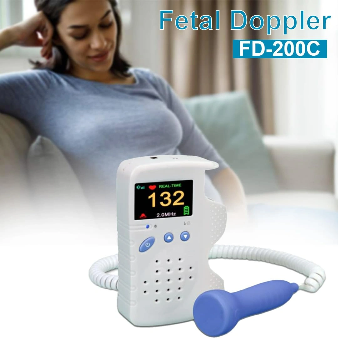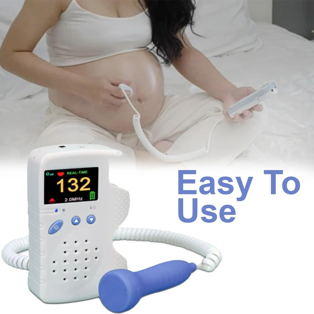 Reliable fetal Doppler monitor with color display. Detects fetal heartbeats from 12 weeks. Compact, portable design with rechargeable battery. Clear audio output and user-friendly interface. Ideal for home and clinical use.
