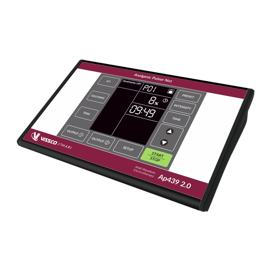 Vissco Johari AP-439-2.0 NXT Multi-Waveform Electrotherapy device for effective pain relief and muscle stimulation. Features multiple waveform modes and adjustable intensity levels. Compact, portable, and easy to use. Suitable for clinical and home settings. Ideal for chronic pain management, muscle rehabilitation, and post-surgical recovery.