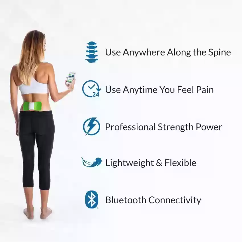 The WiTouch Pro utilizes Transcutaneous Electrical Nerve Stimulation (TENS) technology to alleviate pain by replacing it with a soothing tingling or massage-like sensation. This non-invasive therapy is safe, simple, and effective, ideal for use on the upper, middle, or lower back. The device attaches comfortably with adhesive gel pads, allowing for targeted pain relief.